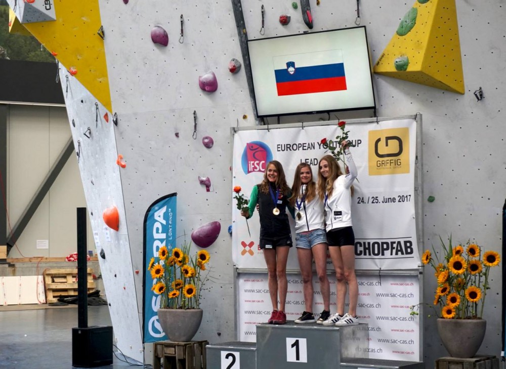 torek, 27. junij 2017, ob 8.30 uri, ogledov: 2718 Nov uspeh mladih slovenskih športnih plezalk v švicarskem UstruŠportno plezanje | | Komisija za športno plezanje | | | Objavil(a): Matej Ogorevc | | Uster, tretja postaja mladinskega evropskega pokala v težavnostnem športnem plezanju, je slovenskim plezalcem, predvsem pa plezalkam ostala v lepem spominu. V domovino sta se namreč Vita Lukan in Urška Repušič vrnili z zlato in bronasto kolajno. | V soboto, 24. in nedeljo, 25. junija 2015 je v švicarskem mestu Uster potekala tretja tekma letošnjega mladinskega evropskega pokala v športnem plezanju v težavnosti.