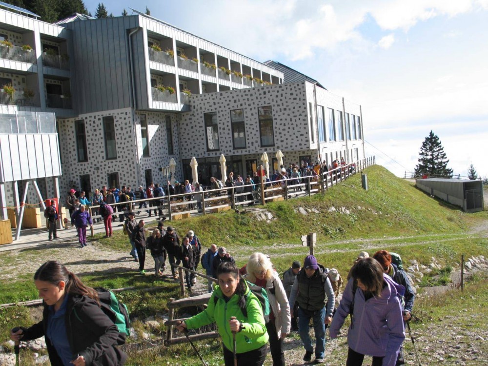 Med hojo je bilo veliko govora, vzpodbude, petja, smeha, otroškega živžava, vriskanja in nekaj najdragocenejšega - medsebojne pomoči in razumevanja med pohodniki. Obrazi vseh so žareli ob premagovanju strmin, ozkih poti, spolzkih kamnov, korenin in prečudovitega razgleda na okoliške vrhove. Veselje nas je napolnilo ob razgledu, ki je pomirilo oko in ga je bilo vredno ujeti v objektiv. Beli penasti oblaki, so skrivali in odkrivali mesta, reke in s soncem obsijane lise.