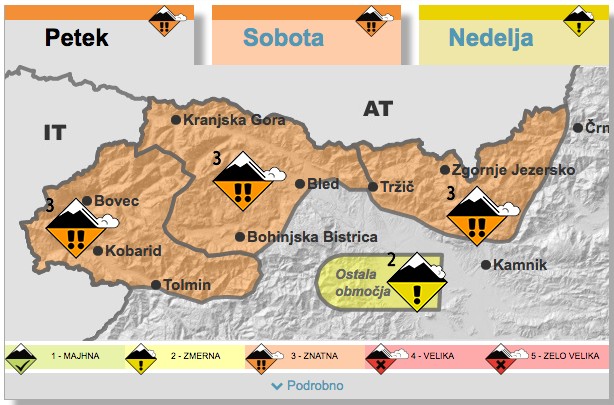 Nevarnost je 3. stopnje po evropski petstopenjski lestvici - ZNATNA.
