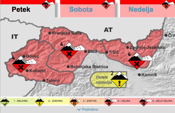 Nevarnost je 4. stopnje po evropski petstopenjski lestvici - VELIKA.