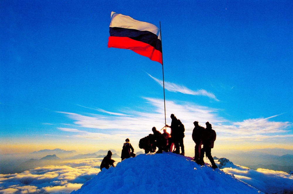 Razvitje slovenske zastave na Triglavu ob osamosvojitvi Slovenije leta 1991 (foto Joco Žnidaršič)