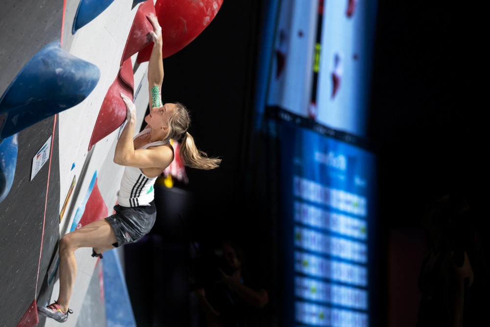 Janja Garnbret vodilna tako po kvalifikacijah kot po polfinalu SP v balvanskem plezanju, kar je najboljša popotnica za finale (foto Luka Fonda)