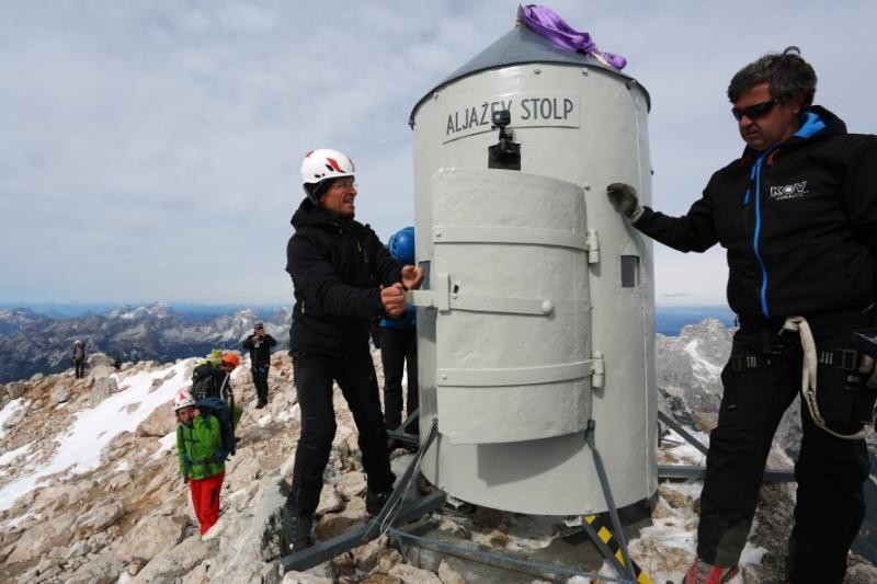 Na vrhu Triglava so strokovnjaki izvedli namestitev in Aljažev stolp je spet na svojem mestu. Del ekipe Zavoda za varstvo kulturne dediščine Slovenije (na spletni strani je objavljeno aktualno fotogradivo) in Narodnega muzeja Slovenije se jutri vrača na Triglav, da poskrbi za dokončno ureditev okolice.