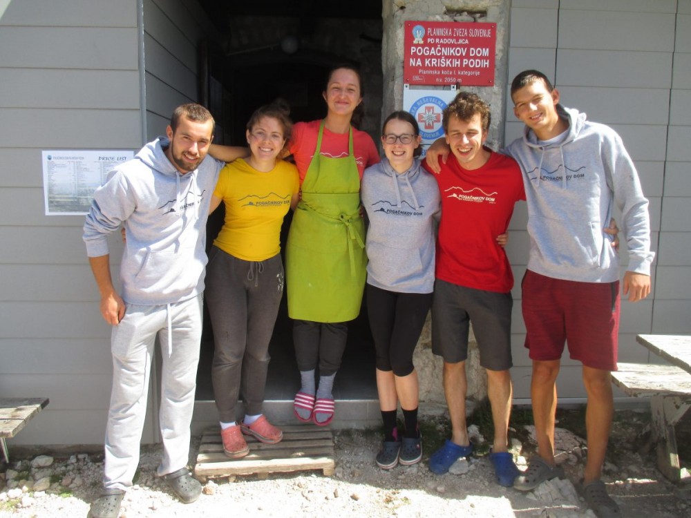 sreda, 14. avgust 2019, ob 13.50 uri, ogledov: 5616 Mlada oskrbniška ekipa Pogačnikovega doma na Kriških podih na Radiu SlovenijaKoče | Mladi | | Gospodarska komisija | Mladinska komisija | | Planinsko društvo Radovljica | | | Objavil(a): Manca Ogrin | | Mlada oskrbniška ekipa, ki vodi Pogačnikov dom na Kriških podih, je v sredo, 14. avgusta 2019, o tem, kaj pomeni oskrbovati priljubljeno in dobro obiskano planinsko kočo ter kako visokogorska koča čez poletje postane njihov drugi dom, pripovedovala v oddaji Gymnasium na 1. programu Radia Slovenija. Prisluhnite oddaji v radijskem arhivu! | "Obvezna smer za mlade nas bo tokrat vodila 2050 metrov visoko na Pogačnikov dom na Kriških podih. Tam smo obiskali mlado oskrbniško ekipo, ki nam je opisala, kakšno je življenje na visokogorski koči. Ob obilici dela se tam dogaja marsikaj in veliko zanimivih zgodb so nam razkrili. Izvedeli boste tudi, kako sta povezana Pogačnikov dom in Maček Muri," je napovedal voditelj oddaje Aleš Ogrin, ki je mlado oskrbniško ekipo obiskal kar na njihovem poletnem drugem domu - Pogačnikovem, se ve!