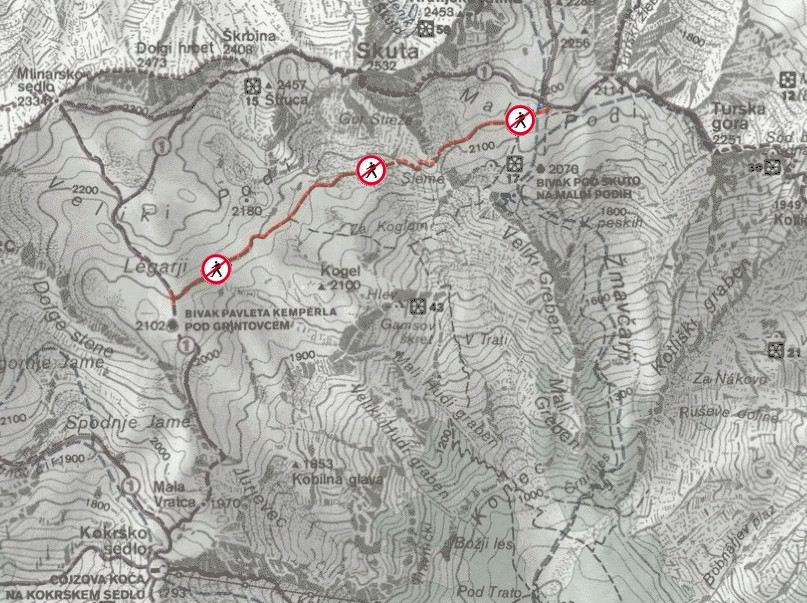 Na planinski poti bo potekalo rušenje obviselih skal, zato obstaja izredno velika nevarnost padanja večjih in manjši skal na omenjeno pot! O zapoti poti bodo obveščali tudi marklacisti na začetku omenjene poti.