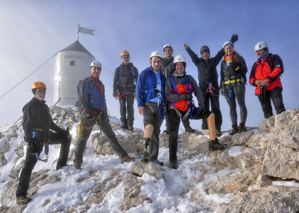 Za svet brez min se je pet žrtev min iz Bosne in Hercegovine povzpelo na vrh Triglava, pri vodenju so pomagali predstavniki planinskih zvez Slovenije in BIH (foto BoBo/Žiga Živulović jr.)