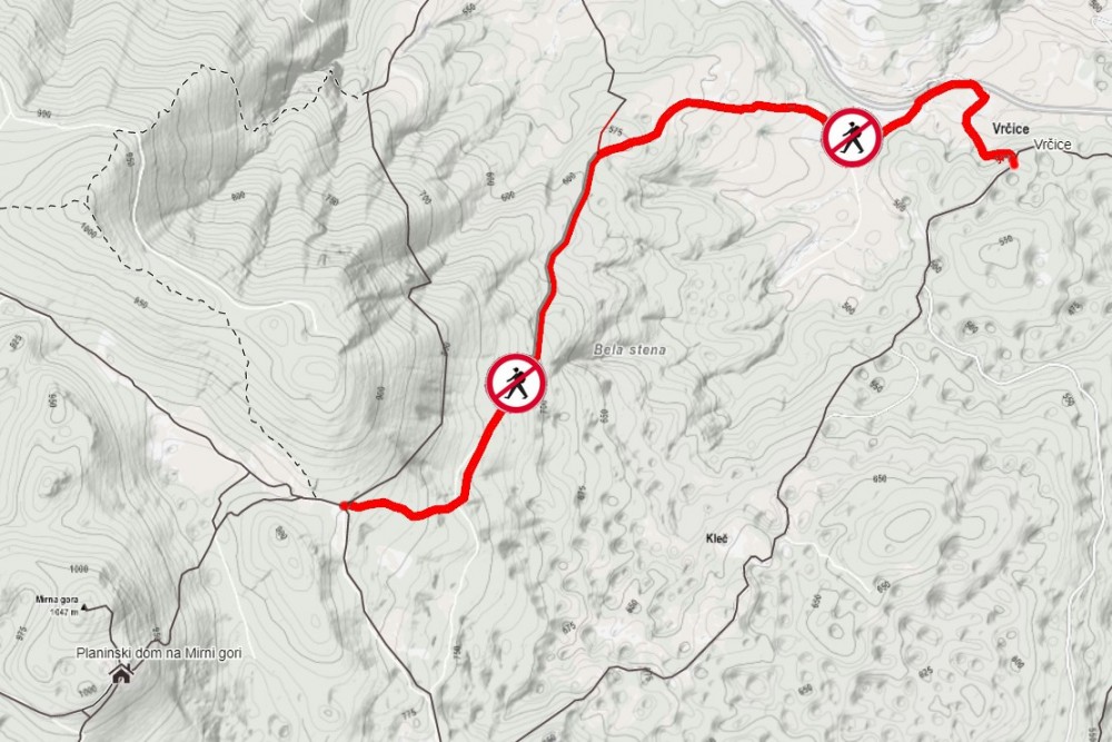 Planince prosimo, da dosledno upoštevajo zaporo poti in se nanjo zaradi nevarnosti ter ogrožanja lastne varnosti ne podajajo. Na mirno goro se lahko povzpnete po planinski poti Vrčice-Kleč-Planina-Mirna gora.