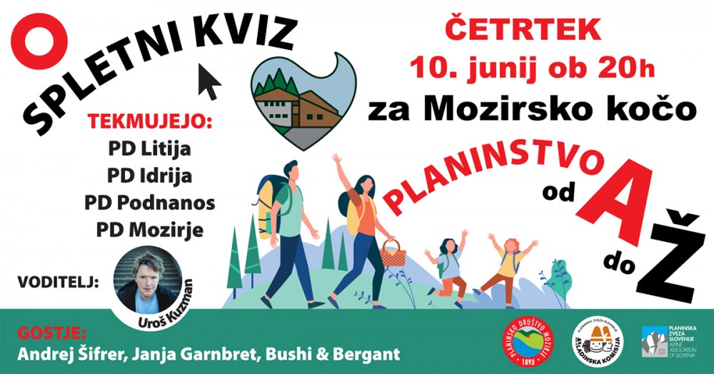 V ekshibicijskem planinskem kvizu, ki ga bo vodil priljubljeni komik, se bodo pomerile zadnje tri zmagovalke državnega tekmovanja Mladina in gore - ekipe planinskih krožkov PD Podnanos, PD Litija in PD Idrija, družbo pa jim bo delala tudi ekipa domačega PD Mozirje. Obeta se torej zabaven večer, poln gorniških znanj, ki ga bodo s svojimi prispevki obogatili tudi kantavtor Andrej Šifrer, športna plezalka Janja Garnbret ter stand up komika Dejan Ikovic in Gašper Bergant.