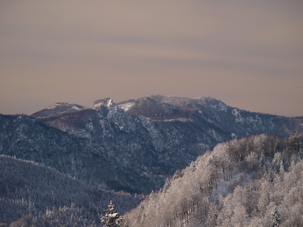 Ko sem pripujsala na greben, se je predme postavil gladko zaliti Veliki Golak. Njegovo smučišče, prevlečeno čez rušje, je bilo res veliko. Na robu sem se odločila, da nadaljujem po trasi Slovenske planinske poti. Bolj sem zaupala markacijam kot orientaciji, da ne bi zašla s poti skozi Kraljeve kambre. To je bila velika napaka. Za robom, na z burjo bogati primorski strani, si je gozd nadel povsem drugo podobo. Prej sloka debla in krošnje visoko nad menoj so se tu vsa skrivenčena in nizka, še dodatno pod težo snega, sklonila do tal. Hacquet je imel prav.