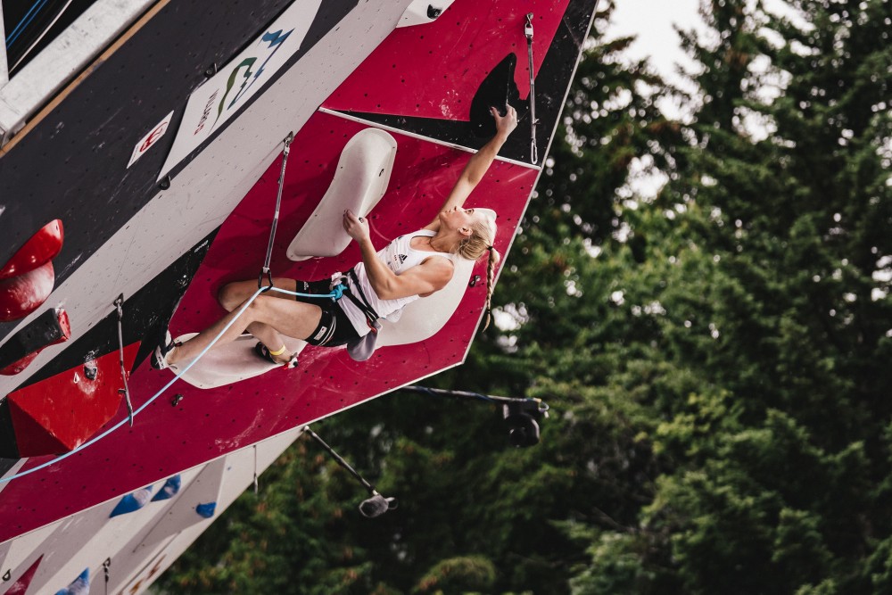 sobota, 3. julij 2021, ob 22. uri, ogledov: 1840 30. zmaga Janje Garnbret Društva | Športno plezanje | | Komisija za športno plezanje | | | Objavil(a): Barbara Gradič Oset | | Najboljša slovenska športna plezalka Janja Garnbret se je v Villarsu v Švici ponovno povzpela na zmagovalni oder. V težavnostnem plezanju je osvojila zlato medaljo in 30. zmago v svetovnem pokalu. | 22-letna Korošica Janja Garnbret je na tekmi svetovnega pokala v težavnostnem plezanju pokazala, da je nepremagljiva. Garnbretova je na tekmi zmagala z impresivno predstavo štirih osvojenih vrhov in je bila edina, ki je prevladovala od kvalifikacij do finala.