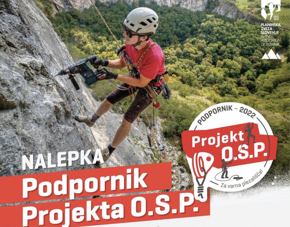 četrtek, 12. maj 2022, ob 8.30 uri, ogledov: 1518 Postani podpornik projekta OSP 2022Športno plezanje | | Komisija za športno plezanje | | | Objavil(a): Manca Ogrin | | Obiskovanje plezališč je brezplačno, zato je odgovornost vsakega plezalca, da po svojih močeh prispeva k vzdrževanju opreme in s svojim ravnanjem poskrbi za ohranjanje plezališč in narave okoli njih. Podpri projekt OSP z nakupom nalepke, ščetke ali majice ali poslanim SMS-sporočilom Projektosp5 na 1919. Z zbranimi sredstvi se trudimo plezališča ohraniti varna, dostopna in lepo urejena. | Projekt OSP ali Opremimo slovenska plezališča je inicitiva vključevanja plezalcev v skrb za plezališča in spodbujanja odgovornega ravnanja in varnega plezanja. Obiskovanje plezališč je brezplačno, zato je odgovornost vsakega plezalca, da po svojih močeh prispeva k vzdrževanju opreme in s svojim ravnanjem poskrbi za ohranjanje plezališč in narave okoli njih. Kako lahko prispevam k Projektu OSP in opremljanju in varovanju slovenskih plezališč? V spletni Planinski trgovini prodajamo nalepke Podpornik projekta OSP 2022, ščetke Projekt OSP in majice Projekt OSP, z nakupom katerih lahko podprete projekt OSP. Prispevate lahko tudi z donacijami preko paypal računa ali s SMS-sporočilom Projektosp5 na 1919.
