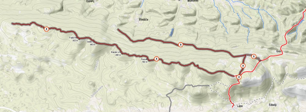OPOZORILO: Uporabniki uporabljajo planinske poti na lastno odgovornost. Uporabniki planinskih poti morajo pri uporabi planinskih poti ravnati samoodgovorno in odgovorno do drugih tako, da ne ogrožajo ali poškoduje sebe ali drugega. Uporabnik je dolžan planinsko pot uporabljati tako, da se po njej ter na in ob zemljišču, preko katerega poteka in na drugih nepremičninah ter favni in flori ob njej ne dela škoda. Prepovedano je omejevati dostop na planinske poti ter poškodovati, odstranjevati ali uničevati markacije, usmerjevalne table, skrinjice in varovalno opremo in druge oznake ali uporabljati neoznačene bližnjice. |