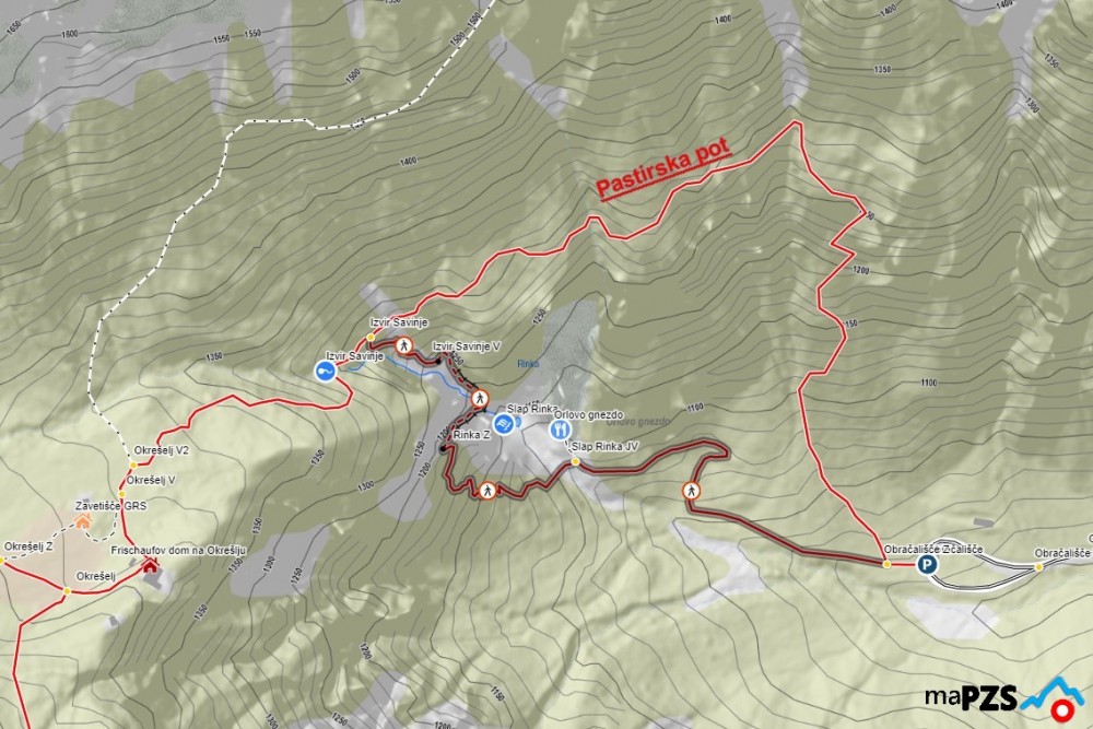 OBVESTILO UPORABNIKOM PLANINSKIH POTI: Uporabnikom planinskih poti priporočamo, da se na spletni strani stanje-poti.pzs.si, v bližnji planinski koči ali pri lokalnem planinskem društvu predhodno informirajo o dejanskem stanju planinskih poti. Če opazite poškodbe planinskih poti ali njihovo neustrezno urejenost (obledele markacije, zaraščenost ipd.), prosimo, da na naslov poskodbe.poti@pzs.si pošljete sporočilo, v katerem navedite, na kateri planinski poti ste opazili pomanjkljivost in pomanjkljivost opišite ter če je možno, dodajte tudi fotografijo.