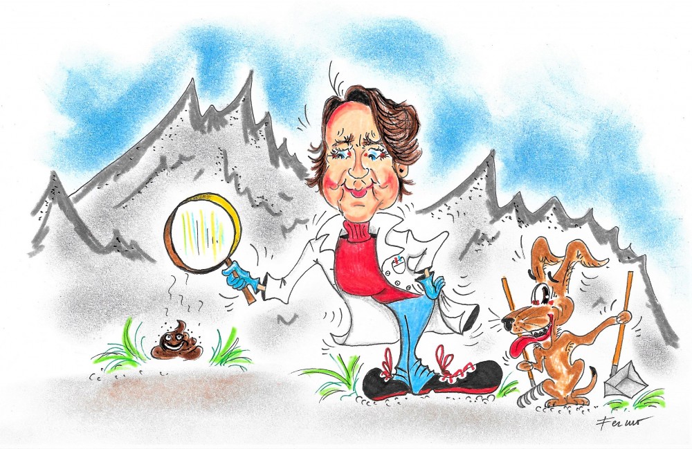 Je samo vprašanje časa, kdaj bomo prenesli kulturo pobiranja pasjih kakcev iz doline v višine? (avtorica karikature je Lorella Fermo)