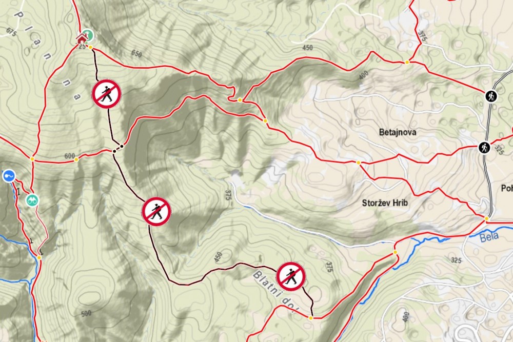 OPOZORILO: Uporabniki uporabljajo planinske poti na lastno odgovornost. Uporabniki planinskih poti morajo pri uporabi planinskih poti ravnati samoodgovorno in odgovorno do drugih tako, da ne ogrožajo ali poškoduje sebe ali drugega. Uporabnik je dolžan planinsko pot uporabljati tako, da se po njej ter na in ob zemljišču, preko katerega poteka in na drugih nepremičninah ter favni in flori ob njej ne dela škoda. Prepovedano je omejevati dostop na planinske poti ter poškodovati, odstranjevati ali uničevati markacije, usmerjevalne table, skrinjice in varovalno opremo in druge oznake ali uporabljati neoznačene bližnjice. |