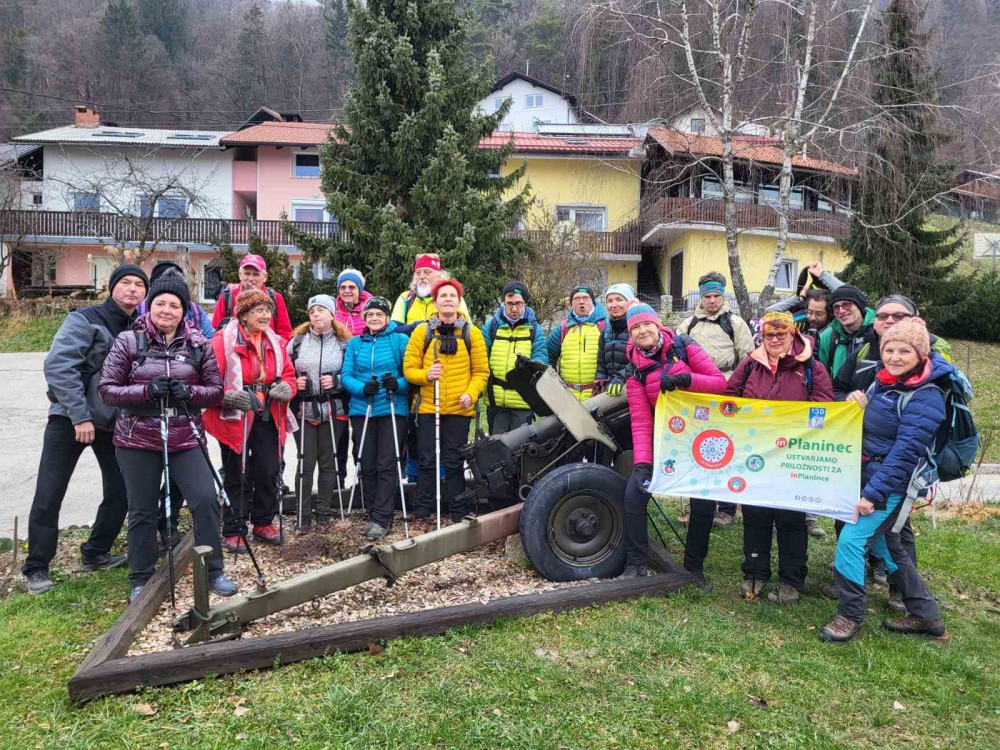 Na sliki skupina planincev stoji ob spomeniku, trije držijo zastavo, arhiv inPlaninec »Pot je bila prijetna za hojo in precej enostavna, torej brez težjih ovir oziroma izzivov. Tla so bila suha in pomrznjena, tako da nam je bilo tudi z blatom prizaneseno,« je pohod opisal Rok Janežič. Štefan Matjaž, vodnik PZS, ki je na tokratnem pohodu spremljal Miho Jakopina, pa je zapisal: »Pod najinimi koraki se je slišalo glasno škripanje, saj je bila zemlja pomrznjena. Sem ter tja je popihal tudi hladen veter, ki me je spomnil, da je zima, čeprav v dolini ni veliko snega. Toda razgiban teren in Mihova nalezljiva dobra volja sta poskrbela, da me ni zeblo.«