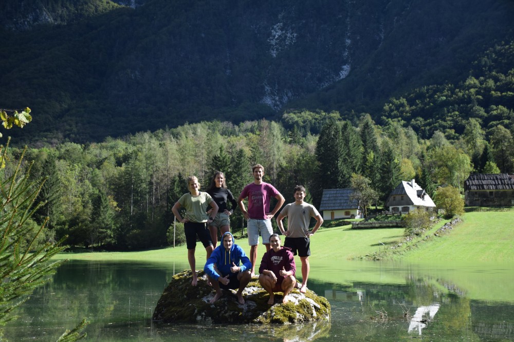 Naslednje jutro nas je presenetila voda, ki nas je povsod obdajala. Na eni strani smo bili ujeti s strani slapov z gora, na drugi strani pa z jezerom, ki je nastalo na cesti v Bavšici. Kljub temu smo dan izkoristili za planinsko orientacijo, odpravili pa smo se tudi do novega jezera in hudournika.