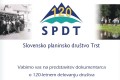 sobota, 16. november 2024, ob 9. uri, ogledov: 509 Vabilo | Premiera dokumentarnega filma o 120-letnici SPD TrstPlaninska kultura | | Slovensko planinsko društvo Trst | | | Objavil(a): Matej Ogorevc | | Vabimo na premierno predstavitev dokumentarnega filma, ki odkriva burno in aktivno 120-letno zgodovino Slovenskega planinskega društva Trst. Dogodek bo, ob glasbeni popestritvi, potekal v sredo 20. novembra 2024 v Narodnem domu v Trstu. |  |