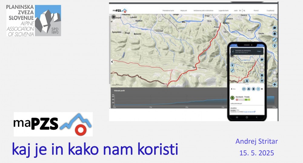 Brezplačna aplikacija Planinske zveze Slovenije maPZS, ki omogoča lažje načrtovanje izletov in orientacijo na terenu, je s podatki o več kot deset tisoč kilometrih označenih planinskih poti nepogrešljiv pripomoček za vse ljubitelje gora. Vodja projekta in urednik kartografije na PZS Andrej Stritar je v spletnem seminarju predstavil, kako nam maPZS koristi pri načrtovanju izletov, kako aplikacija deluje, kako maPZS namestimo na telefon ter posamezne funkcionalnosti na zaslonu računalnika in na zaslonu pametnega telefona. Aplikacija tudi opozarja na zaprte planinske poti, hkrati pa maPZS ni omejen zgolj na planinske poti, saj je odlično orodje za raziskovanje in vodenje po poteh v naravi in mestih.