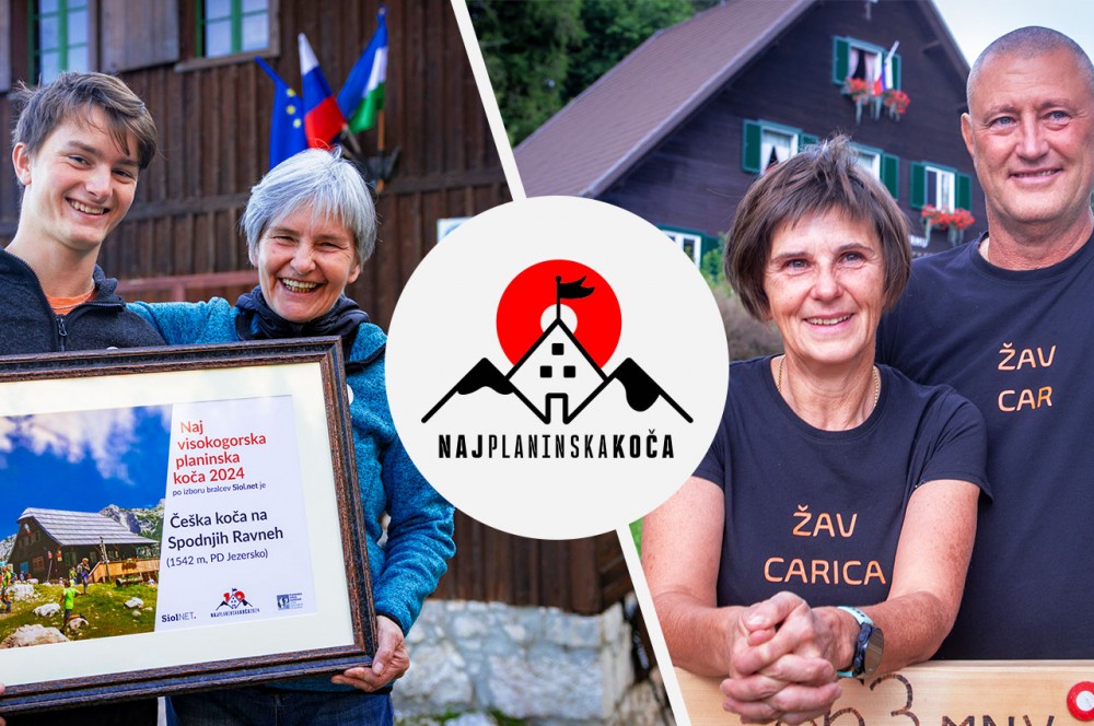 Lanski zmagovalki: Češka koča na Spodnjih Ravneh naj visokogorska planinska koča 2024 in Koča na Žavcarjevem vrhu naj planinska koča 2024.