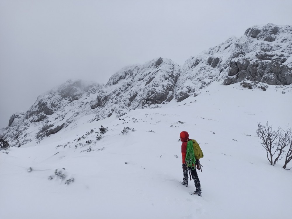 Letošnja zima je bila sicer skopa s snegom, a kot zanalašč je ravno zadnji teden februarja tik pred planiranim taborom prišla v Kamniško Savinjske Alpe kar lepa pošiljka. Priznam, malce sem že začela razmišljati, kaj to pomeni za naše možnosti plezanja, ampak na koncu je po posvetu s Patricijo padla odločitev, da gremo in probamo storiti, kar se bo dalo.