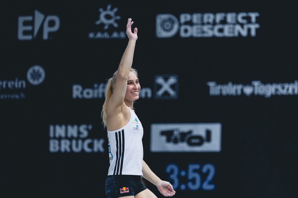 Finale Janja Garnbret se je v velikem slogu vrnila na tekme svetovnega pokala in z izjemno predstavo v finalu pokazala, da je v vrhunski formi. Kot edina tekmovalka je osvojila vse štiri vrhove in s seštevkom 99,3 točke prepričljivo zmagala. Po izjemni predstavi v finalu je Korošica strnila svoje vtise: "Začetek Innsbrucka ni bil ravno najboljši, imela sem kar malo tresoč start kvalifikaciji, ampak to je bilo nekako pričakovano, ker še vseeno, ko toliko časa na tekmuješ, nekako nisi več navajen tega časovnega pritiska in vsega tega. Start ni bil najboljši, ampak polfinalu je bilo že 100 odstotkov boljše kot kvalifikacije. Malo bolj sem se sprostila, ampak še vse nisem bila prava. V polfinalu pa sem dobila nazaj tisto sproščenost, tisto mehkobo in sem bila spet tista prava Janja, ki jo vsi dobro poznamo. Tudi ne vem, kdaj sem bila na nazadnje tako sproščena in enostavno mi je bilo fantastično plezati. Dobila sem res srčen pozdrav od občinstva in vsi so bili veseli, da sem nazaj. Vesela sem, da nisem bila občutka, da ljudje karkoli pričakujejo od mene, kar mi je bilo res neverjetno in to sem potrebovala, tak start in zdaj gremo samo naprej." Drugo mesto je osvojila Francozinja Oriane Bertone (69,8 točk) z dvema vrhovoma in dvema conama, tretje pa Japonka Anon Matsafuji (59,5 točk), ki je osvojila en vrh in dve coni.
