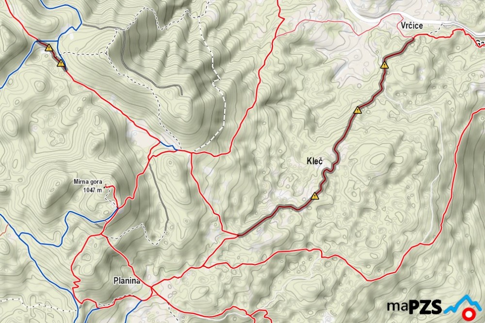 OPOZORILO: Uporabniki uporabljajo planinske poti na lastno odgovornost. Uporabniki planinskih poti morajo pri uporabi planinskih poti ravnati samoodgovorno in odgovorno do drugih tako, da ne ogrožajo ali poškoduje sebe ali drugega. Uporabnik je dolžan planinsko pot uporabljati tako, da se po njej ter na in ob zemljišču, preko katerega poteka in na drugih nepremičninah ter favni in flori ob njej ne dela škoda. Prepovedano je omejevati dostop na planinske poti ter poškodovati, odstranjevati ali uničevati markacije, usmerjevalne table, skrinjice in varovalno opremo in druge oznake ali uporabljati neoznačene bližnjice. |
