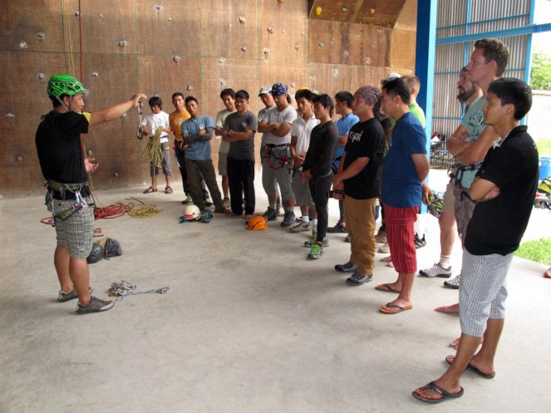 Praktično delo poteka po vnaprej pripravljenem programu in sledi smernicam tehničnih standardov UIAA, čemur osebno posvečam še največ pozornosti. Zanimivo mi je opazovati nepalske inštruktorje, ki so bili deset let nazaj moji tečajniki, njihov napredek in dojemljivost za podajanje znanja. Resnično so na visoki ravni, njihova edina težava je čas, ki je tukaj v Nepalu relativen in si moraš vedno vzeti uro rezerve. To je Nepal in prav je, da ima vsaka država svojo posebnost. Selekcija tečajnikov je bila kvalitetna, saj znanje zajemajo z veliko žlico. Če so deset let ali pa še štiri leta nazaj imeli v 80 % slabo in nevarno plezalno opremo, praktično tokrat ni nobenega takšnega, nad čemer sem navdušen; in celo velikokrat v Sloveniji srečam ljudi s slabšo opremo.