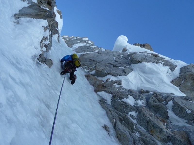 naslednjega dne sva na vrhu smeri, poskusila sva še naprej proti vrhu Huntterja,