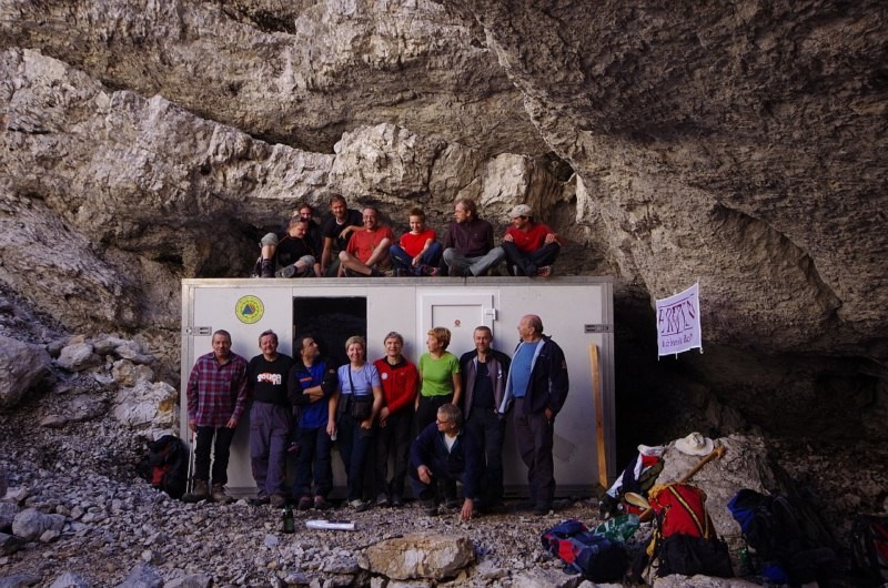 ponedeljek, 22. oktober 2012, ob 0. uri, ogledov: 6218 Novi jamarski bivak na Tolminskem MigovcuKoče | Društva | | Gospodarska komisija | | Planinsko društvo Tolmin | | | Objavil(a): Zdenka Mihelič | | V nedeljo, 21. oktobra 2012, so člani Jamarske sekcije PD Tolmin predali namenu nov bivak, ki se nahaja v eni izmed številnih vrtač na planoti Tolminskega Migovca. S tem so kronani dolgotrajni napori tolminskih jamarjev, da bi med raziskovanji v osrčju Migovca imeli bolj stalen objekt. | Kot je znano, so speleološke raziskave v tem območju zadnje čase precej intenzivne in vsako leto postrežejo z novimi odkritji, zato je njihova logistična podpora vse bolj zahtevna. Vsa leta so za večtedenske raziskovalne tabore uporabljali na površini le šotore, gora pa včasih poleti rada postreže tudi z nenadnimi in močnimi nevihtami. Poleg jamarjev bodo bivak lahko uporabljali tudi gorski reševalci ob nujnih intervencijah, jamarska reševalna služba, markacisti matičnega PD in nadzorniki Triglavskega narodnega parka. V njem bo nekaj pogradov in shranjena najnujnejša oprema, potrebna za napredovanje v podzemski svet kot tudi za morebitno prvo pomoč.