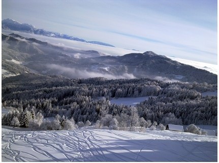 Stari vrh (450 višinskih metrov vzpona). Trasa poteka po smučarski progi.