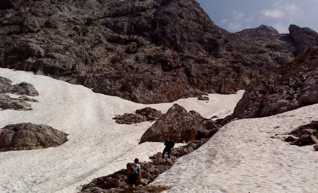 torek, 18. junij 2013, ob 0. uri, ogledov: 3701 Nova smer: Trije mušketirjiAlpinizem | | Komisija za alpinizem | | | Objavil(a): Zdenka Mihelič | | Drago Večerič, Aleša Dolinar in Sebastjan Potočnik so v južni steni Prisojnika potegnili novo smer Trije mušketirji. | Sebastjan Potočnik: 'Smer sem imel ogledano že od lanskega leta. Skala v tem koncu Prisojnika je presentljivo res dobra, letos se samo pozna, da je padlo resnično veliko snega in je dosti naloženega in majavega.