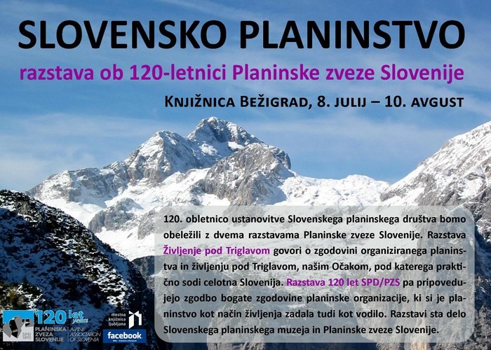 120. obletnico ustanovitve Slovenskega planinskega društva, katerega naslednica je Planinska zveza Slovenije, bodo v MKL - Knjižnica Bežigrad obeležili z razstavama PZS 'Življenje pod Triglavom', ki govori o zgodovini organiziranega planinstva in sedanji organiziranosti z različnimi dejavnostmi planinstva in s tem življenja pod Triglavom; ter z razstavo '120 let SPD/PZS', ki pa pripoveduje zgodbo bogate zgodovine planinske organizacije, ki si je planinstvo kot način življenja zadala tudi kot vodilo. Razstavi sta delo Slovenskega planinskega muzeja in Planinske zveze Slovenije.