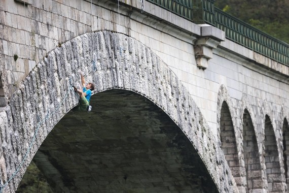 Dvajsetletni študent ljubljanske fakultete za šport se je na ta podvig že dalj časa pripravljal s podporo slovenske plezalne reprezentance in Red Bulla. »Do sedaj sem vedno plezal na umetnih stenah in v plezališčih, takšnega mostu pa sem se lotil prvič. Občutek je super, saj lahko spustiš noge in napreduješ le z rokami,« je povedal in dodal, da je »danes prvič v življenju naredil dve stvari, plezal po mostu z največjim kamnitim lokom na svetu in skočil z njega, ob tem pa naredil obrat nazaj. Vsekakor si bom oboje zapomnil za vedno.«
