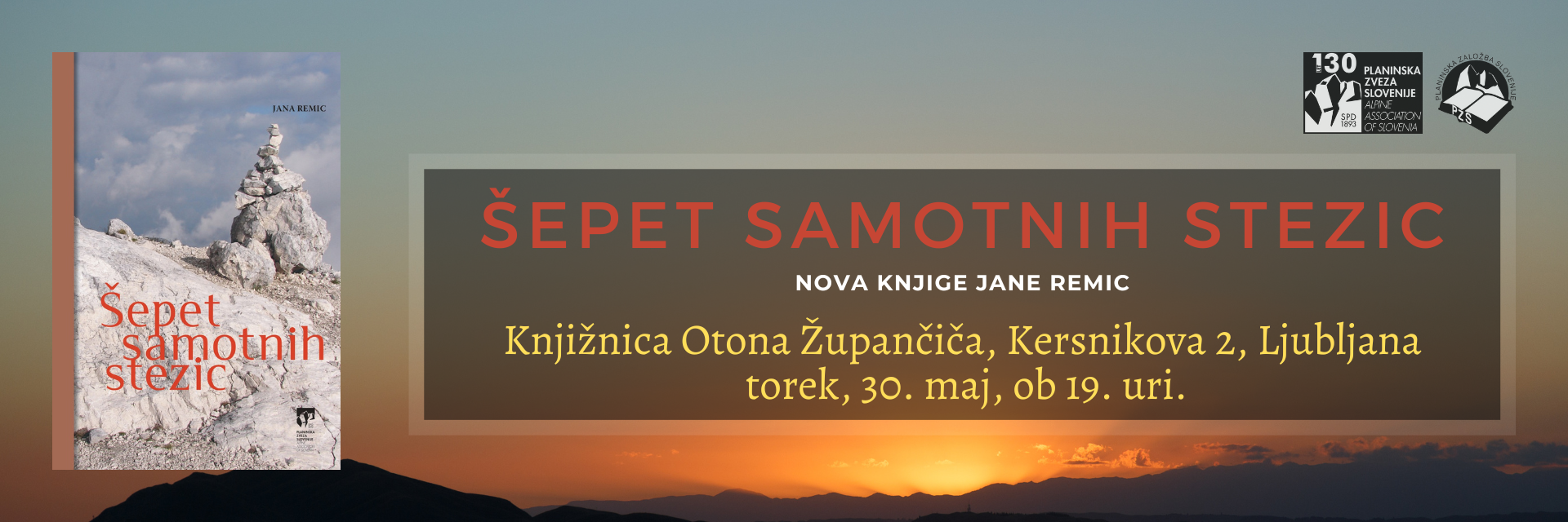 V Planinski založbi smo letos izdali knjigo Šepet samotnih stezic, avtorice Jane Remic. Z avtorico se bo 30. maja v Knjižnici Otona Zupančiča o doživetjih v planinskem svetu pogovarjala Zdenka Mihelič. |