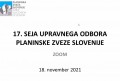 Upravni odbor Planinske zveze Slovenije (UO PZS) se je na 17. seji v mandatnem obdobju 2018–2022 sestal 18. novembra 2021 prek zooma. Med drugim se je posvetil prejemnikom najvišjih priznanj za leto 2021, zneskom priporočene članarine za leto 2022 ter podaljšanju veljavnosti certifikatov okolju in družinam prijazna planinska koča. |