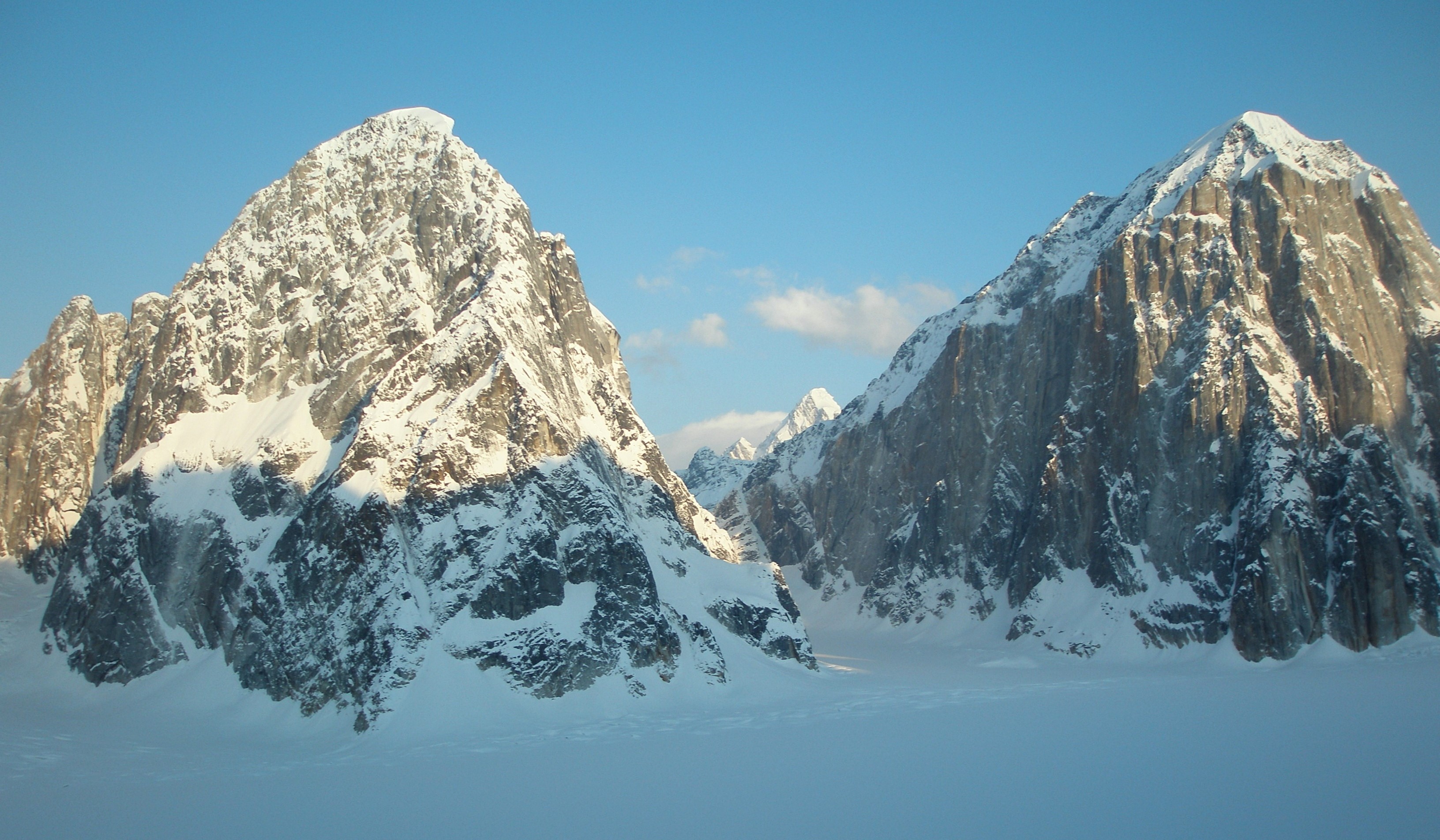 Spet jaz. Gašper je odsoten, odšel je plezat na Aljasko, bolj točno v Ruth Gorge, v narodni park Denali. Dolina z enormnim potencialom hard core ciljev v, do 1500 metrov visokih kombiniranih stenah gora Mooses Tooth, Mt.Dickey, Mt. Bradley, Mt Johnson, Mt. Church ...Človek bi težko našel večjo koncentracijo enormnih sten na enoto površine kjerkoli na svetu. Gašper in Tom Livingstone sta se utaborila na sredini ledenika pod njunim glavnim ciljem, steno Mt Dickey. Vreme in hud mraz do sedaj še nista dopustila resnih poskusov. Glede na letošnjo alpinistično aktivnost obeh akterjev upravičeno stiskamo pesti. |