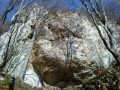V sektorju Nos, plezališče Kotečnik, nad smerjo Uho in Vihar (levo od Indijanke) grozi padec večje skale! |
