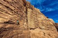 Najboljša je bila tista, ko sta se dva nadobudna klajmberja podala v puščavo, seveda z beduinskim vodnikom, ki ju je usmeril do prave stene. Kot pravi Slovenec boš seveda steno in sestop zmogel v parih urah. Noro plezanje po peščenjaku, ki pa ni vedno najtrši, pa zadevo podaljša, zato pa je avantura toliko boljša, vredna vriskanja. To moraš it plezat, ful dobr! Itak. No, še dobro, da ju je pod steno čakal beduin, ki je zakuril ogenj in jima osvetljeval abzajle tam, 300 m višje. Sta pa vsaj imela topel čaj na dnu. |
